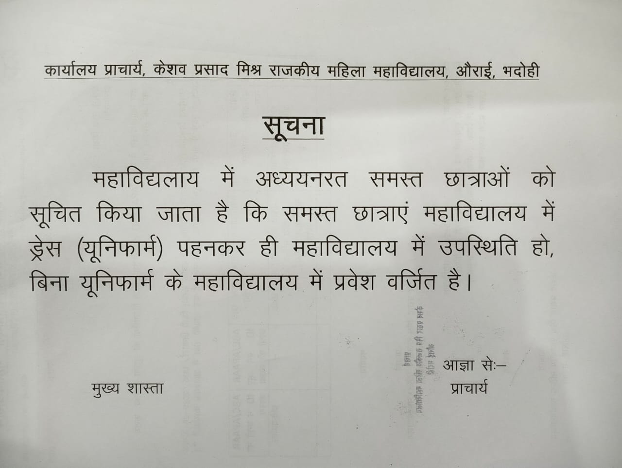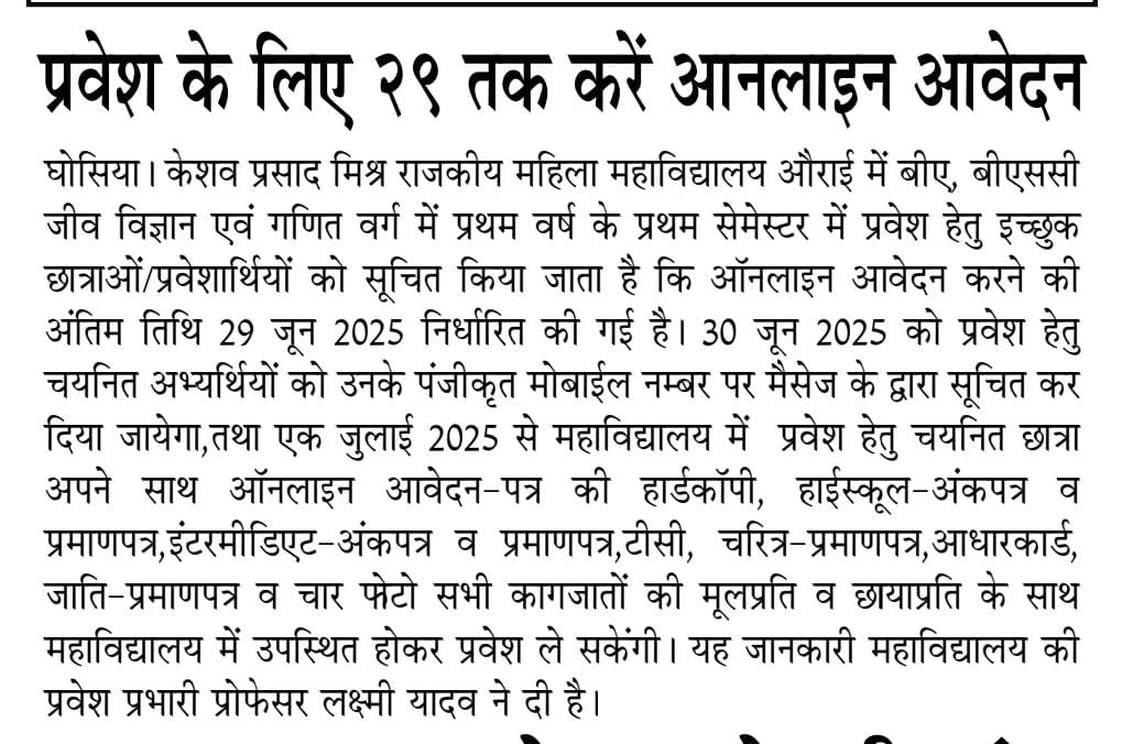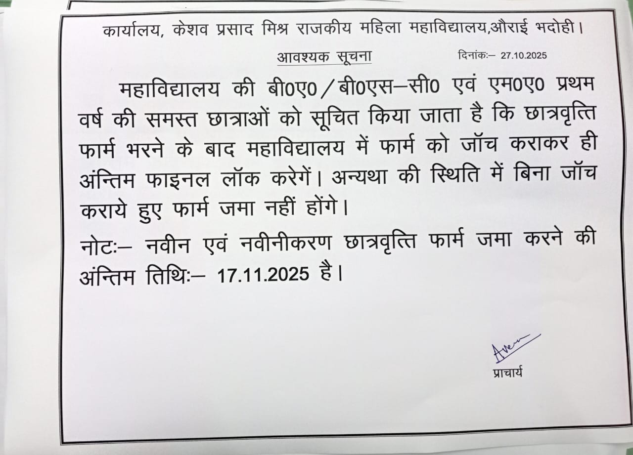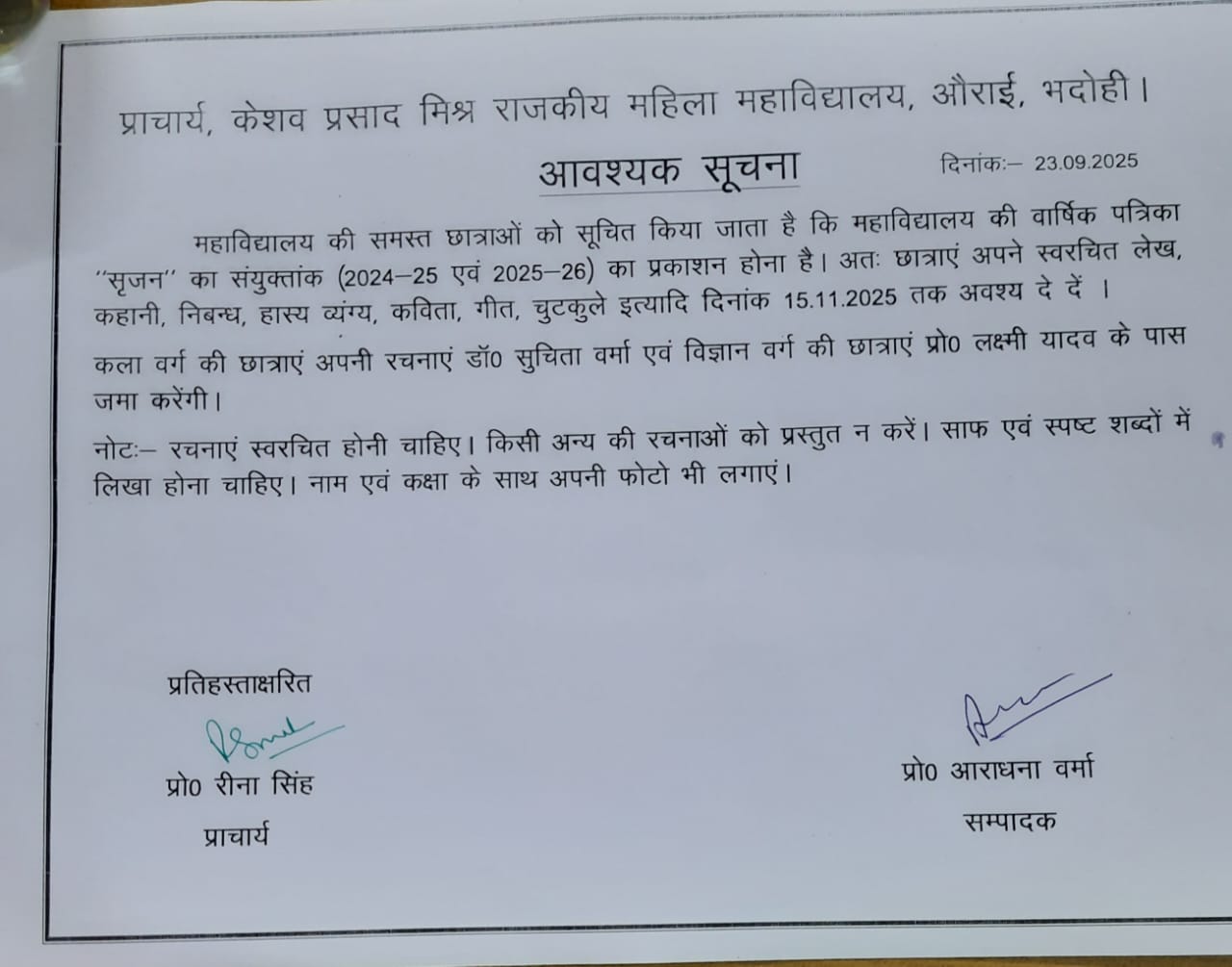 नकलविहीन और शुचितापूर्ण परीक्षाओं के लिए हम सदैव प्रतिबद्ध रहे हैं। प्राध्यापक अपनी कक्षाओं के प्रति सजग रहे हैं। इस बात का सदैव ख्याल रखा जाता है कि छात्राओं के साथ किसी भी प्रकार का भेद-भाव न हो। परिसर रैगिंग से पूरी तरह मुक्त है। परिसर को साफ-सुथरा और हरा-भरा रखने में प्राचार्य-प्राध्यापकों की प्रेरणा और कर्मचारियों की मुस्तैदी यहाँ देखी जा सकती है।विभिन्न अवसरों पर छात्राओं की सहायता से स्वच्छता और वृक्षारोपण के कार्यक्रम आयोजित कराए जाते रहे हैं। गाँव की छात्राएँ तेजी से आगे बढ़ रही हैं। वे विभिन्न क्षेत्रों में अपना सम्मानजनक स्थान बना रही हैं। गाँव की लड़कियों के आगे बढ़ने में राजकीय महाविद्यालयों की बहुत बड़ी भूमिका है। न्यूनतम फीस और अधिकतम सुविधा की नीति ने गाँव की लड़कियों को निर्बाध तरीके से उच्च शिक्षा हासिल करने में सहायता पहुँचाई है। यह गौरव केशव प्रसाद मिश्र राजकीय महिला महाविद्यालय, औराई, भदोही को हासिल है।